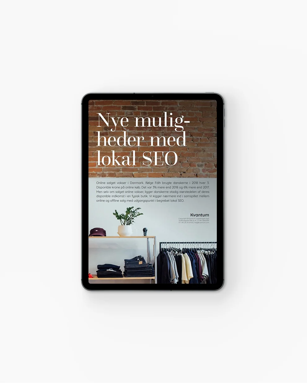 Vi tør godt sige, at lokal SEO kan blive nøglen til succes de kommende år. Lokal SEO hænger nemlig sammen med den organiske trafik, der kommer ind på en webshop, men det giver også mening i forhold til annoncering. I dette whitepaper kommer vi ind i de forskellige elementer i lokal SEO og giver et indblik i, hvorfor online og offline markedsføring kommer til at spille mere sammen de kommende år.